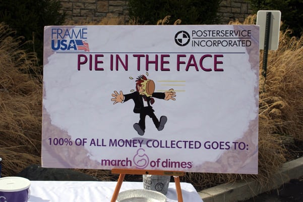 In the heat of all the excitement, Dan, CEO of Frame USA, posted a challenge: If we could raise $25 dollars, we could pie him in the face. This resulted in nearly $100 dollars collected and as a result, Dana, the President, and two of the charity coordinators, Julie and Chris, received whipped cream pies as well. Pictures added to gallery above.